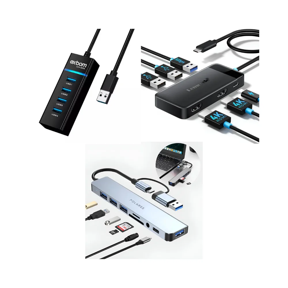 Se você trabalha com edição, design ou planilhas grandes, a docking é quase obrigatória. Já para tarefas mais leves, um hub com 4–6 portas USB 3.0 + leitor de cartão SD já resolve. Só verifique a compatibilidade com seu modelo de notebook antes de comprar.